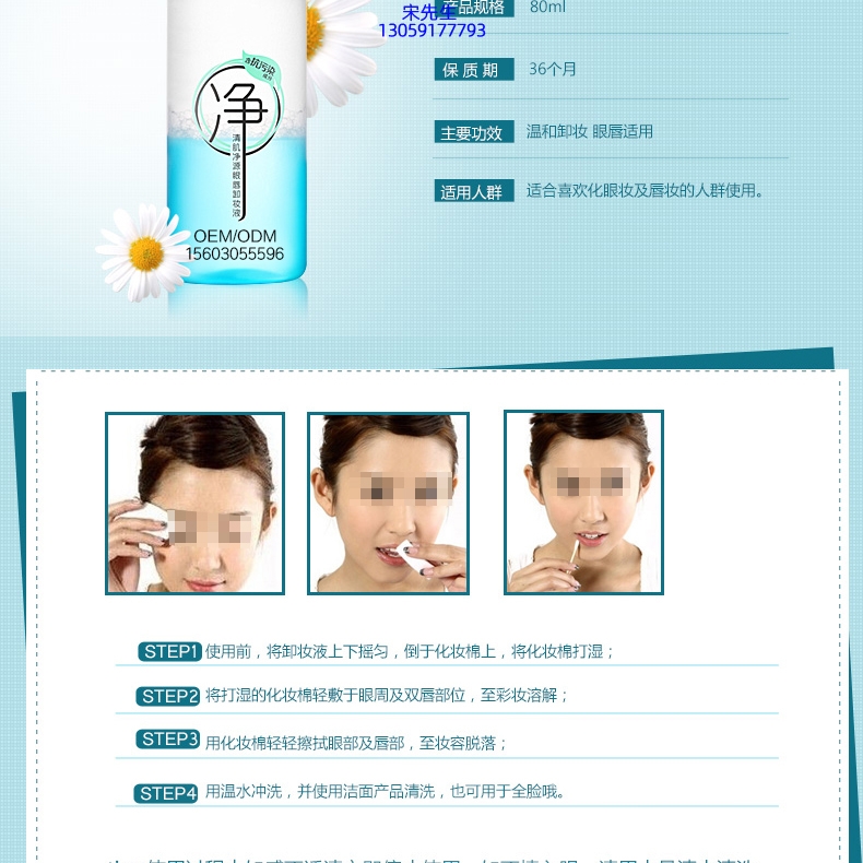 卸妆水 清洁面部彩妆无残留 温和不刺激 蕴含氨基酸、玻尿酸成分,卸妆同时带来滋养肌肤